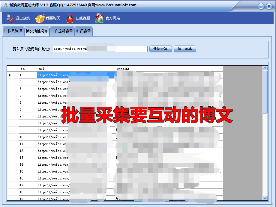 2.批量自动采集某个微博的最新博文(可以设置取前几天的内容),提取需要互动的博文链接地址